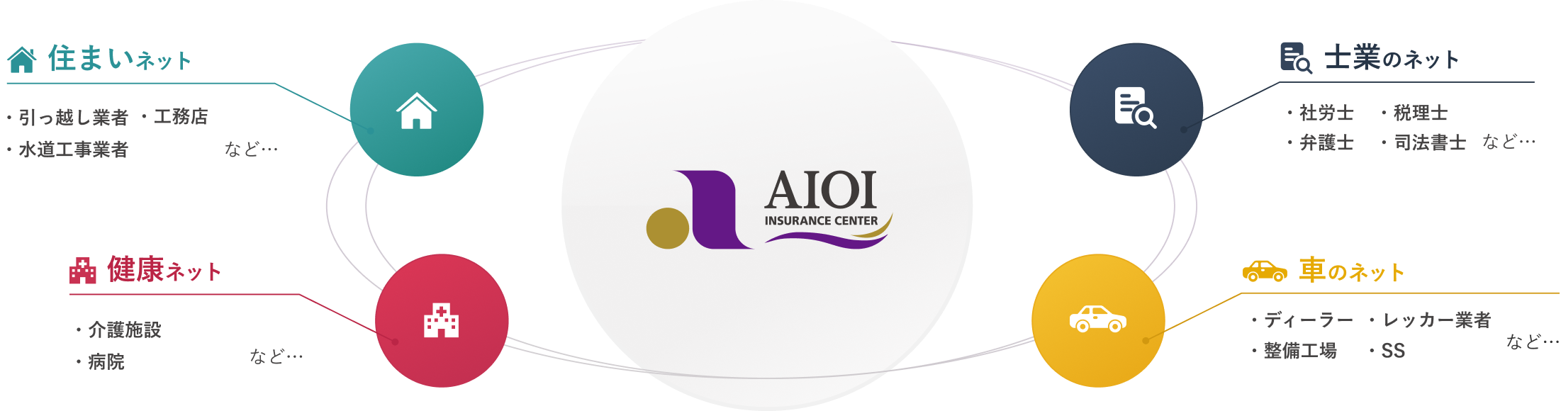 近年、気候変動による自然災害の増加や新型コロナ等、環境は急激に変化し、今後も加速が見込まれてます。弊社は、有事の際も平時と変わらずお客さまを守ることができる地域の代理店グループとして、一層の品質向上・多様なサービスの提供が必要であると考え、2022年4月より、あいおいニッセイ同和損害保険と新たに業務提携を結び、最優のビジネスパートナー(AD Flagship partner、全国に26代理店)として中長期的な協力体制を構築しました。